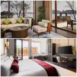 🏩The scenery around the hotel is picturesque. You can drive around the lake and the hotel, ride a bicycle, take a Tianmu Lake cruise, the hotel has Zen meditation, afternoon tea🍵, swimming pool🏊♀️, gym🏋️♂️, cinema🎞, hot spring♨ and SPA, etc.💆♀️.