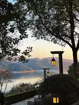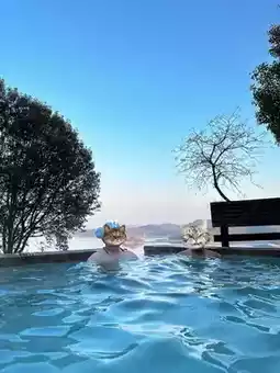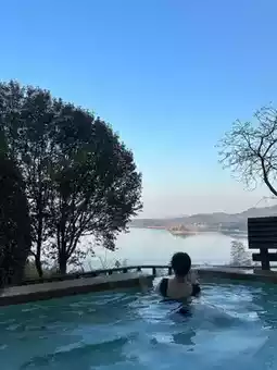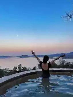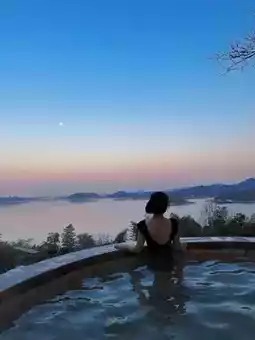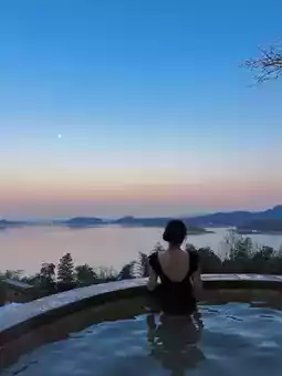 The first time I took an outdoor hot spring bath, I was attracted by the scenery inside. It really surrounds the Tianmu Lake. While soaking in the hot spring, I can see the lake and mountains in the distance. When the weather is good, I can see the sunset. The sky changes from sky blue to pink blue. The small hills on the other side of the lake are illuminated by the setting sun✨ into small golden mountains. It was really enjoyable!