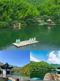 ✨ Route Two: Mainly playing in the water by stream trekking, you can take a boat ride on the quiet lake, enjoy the bamboo sea scenery, then visit Bird Paradise, trek in the forest stream, listen to music in the water, swing, and finally take the cableway to Wuyue First Peak.