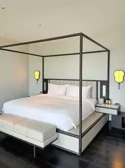 🛏The guest rooms are naturally quiet, with a minimalist luxury style. The design has a strong natural aesthetic, and the amenities are all of high quality👍.