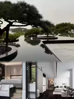 Only 8 rooms are built, or courtyard view, or mountain view, or lake view, every household is picturesque, from the exterior of the building to the interior space are cleverly integrated into Picasso's painting elements, the public area is made of precious trees to create the scenery of the four seasons, equipped with outdoor dining area, yoga platform, infinity pool, sunken courtyard, viewing pavilion can view the lake, taste tea, drink, leisurely
