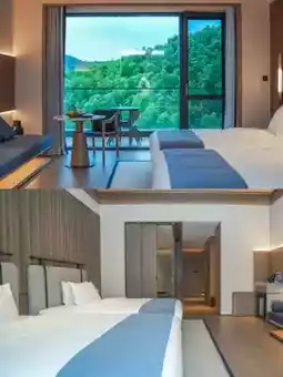 The rooms are simply decorated yet luxurious, with all the facilities you need. The bedding is soft and comfortable, and you can sleep with peace of mind. The view from the balcony in the room is excellent, and you can enjoy the natural scenery outside. The bathroom is separated from wet and dry, and the toiletries are of good quality, full of high-end feeling.