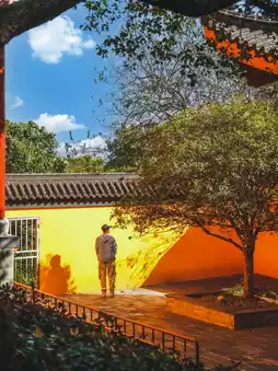 Red pillars, weathered yellow walls – the temple's design and color scheme are ingenious. The dappled shadows of trees and sunlight are incredibly beautiful. And I hear Jinglin Chan Temple is especially effective for praying for wealth, so I gave it a try🤭