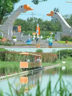 ✔️Take a water train to visit the Goose Lake. The front of the train is shaped like a cartoon goose. The kids shouted "Tu Tu Tu" while watching the white geese diving. 🦢
