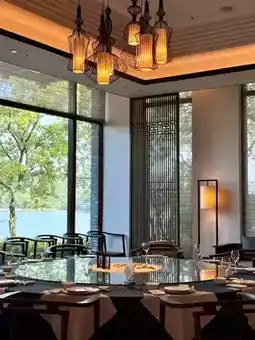 The hotel restaurant maintains consistent quality, with private dining rooms offering lake views that harmoniously blend with the greenery outside. After meals, guests can engage in handicrafts or scripture copying in the adjacent Zen room, enjoy tea or chess in the lobby, watch movies in the starlit cinema, or work out in the gym illuminated by natural water reflections. Lakeside activities are plentiful too - guests can cycle around the lake using hotel bicycles, visit the nearby Bao'en Zen Temple, or chase sunsets along Tianmu Lake's shores.