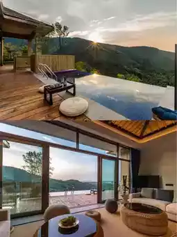 🏡 Stay in a scenic detached villa 🏠 with a private pool and hot spring! Kids run around the villa: "Our house is like a fairy tale castle!" 🛕
