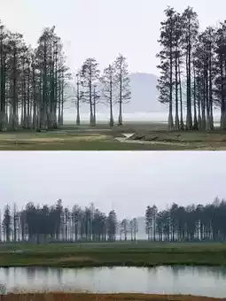 Two ultra-niche spots with incredible atmosphere. Two days of rain left the already vague routes shrouded in mist. After some exploration, we found Daxi Reservoir—a literal ink-wash painting. The dried-up water revealed redwood roots rarely seen in summer. More like wetlands than a reservoir, the soft ground and foggy backdrop made it feel like wandering through a painting.