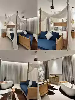 Each room features large floor-to-ceiling windows, and there are options for family rooms, lofts, and kid-friendly rooms. Every room is beautifully designed and equipped with smart controls. You can even book the entire villa!