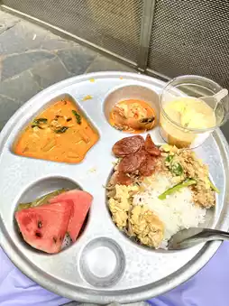 Accumulating merit bit by bit... This time, I had the opportunity to observe the Eight Precepts at Wat Pa Phu Thap Boek again. It's a peaceful temple with a cool, comfortable atmosphere. It's like a place to rest your body and mind. The temple holds morning almsgiving around 6:00 AM in front of the viharn, followed by a merit-making ceremony around 8:30 AM. There's a meal before 12:00 PM. After noon, there's no eating. After that, it's up to you whether you want to meditate, walk, sweep the temple grounds, or help out in front of the chapel or in the kitchen. The evening prayers are held around 7:30 PM.