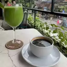 The eclectic design adds a unique charm, especially when enjoyed from the balcony view. We ordered the pita and toast sandwich, both of which were delicious. The juice serving size was reasonable, unlike some other places. I also tried the banana with espresso drink, which was excellent.