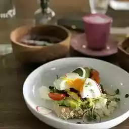 I like the interior, friendly service, and a lot of tasty options on the menu. Ample seating choices, upstairs was super cosy and you could lounge all day with your favorite book, downstairs was cool and spacious with long tables and individual round tables for a small number and a large number of people. We tried burgers with pulled pork and potatoes, and their smoothie with strawberry is heaven. And don’t forget to take a photo near their pink wall on the left side!
