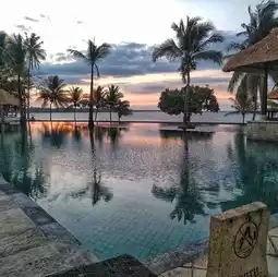 The Oberoi, Lombok only has 50 rooms, but the sprawling property has 24 acres of beautiful, manicured lawns dotted with palm trees. It's relatively removed from other resorts, and views of the Bali Sea can be seen throughout. The tropical setting emanates from the open-air, thatched-roof pavilions that house the spacious lobby and restaurants. Staff are dressed in traditional Indonesian garb and are on-hand in the reception area, which has rattan furniture and overlooks lovely ponds and reflection pools. Free horse-drawn pedicabs are often waiting outside the entrance and can provide guests with rides to the village of Tanjung. This resort is best-suited to travelers wanting an all-inclusive and quiet vacation, as the sprawling property provides privacy for both families and couples.