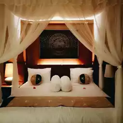 Opened in 1987 and one of the first hotels in downtown Senggigi 30 years ago, Kila Senggigi Beach Lombok occupies a prime beachfront location within a short walk of restaurants, bars. and shops. Guests arrive at an entrance with steps flanked by a lovely cascading water feature and lanterns, leading to an elegant open-air lobby. Decorations throughout the rest of the property are more subdued; expect a traditional design of earthy tones, natural materials such as rattan, and pale hues in artwork and linens. Due to its age, there's some evident wear and tear, and the property overall could use a refresh. All restaurants have an open-air setting and at least partial sea views. Despite its central setting, the atmosphere is quiet and relaxed here. Guests are primarily couples, plus some families and groups of friends.