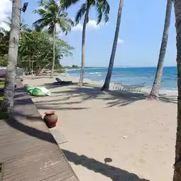 The resort’s appealing swimming pool offers a great alternative to the rocky ocean directly in front of the hotel, which is not swimmable without renting beach shoes from the resort. Also note that hawkers can be a nuisance, though this is common for the area. Adjacent to the white sand, the long infinity pool is surrounded by a wooden deck with umbrella-shaded loungers, gazebos, and palm trees.