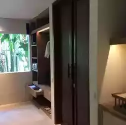 The room is very spacious, with complete facilities, including a sitting area in front of the room, a work desk, and an open-air bathroom. I like it very much.