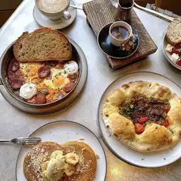 🧇 Barboun @barboun.london - modern Eastern Mediterranean brunch spot with delish shakshuka, flat breads & sticky toffee pud 🙌🏼