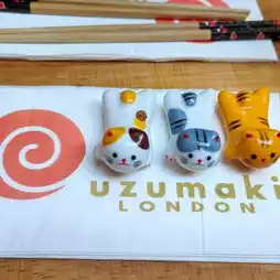 The decor is Japanese-style. They even sell merchandise, including a cat chopstick holder.