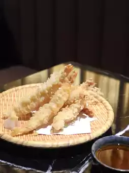 The tempura prawns were perfectly fried, with a super crispy coating and fresh shrimp inside—absolutely delicious!