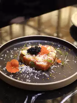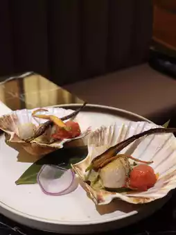 The scallops were impressively fresh and large, paired with cherry tomatoes for a refreshing taste. The scallops were so tender and flavorful!