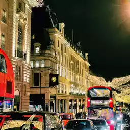 After sunset, Regent Street glows with glamour — ideal for a night stroll.
