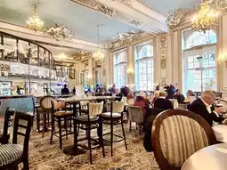 ✨ Palatial Victorian splendor: Gilded plasterwork, 20-foot ceilings, stained glass, and crystal chandeliers — pure railway-age grandeur.