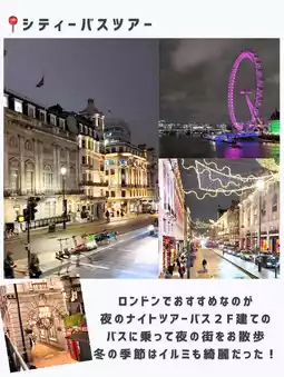 Recommended: A luxurious tour to enjoy the night view of London on a double-decker bus🌃Big Ben and Tower Bridge are lit up and it's so impressive✨It's cold but it's exciting!