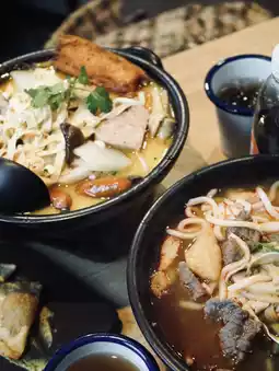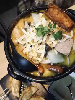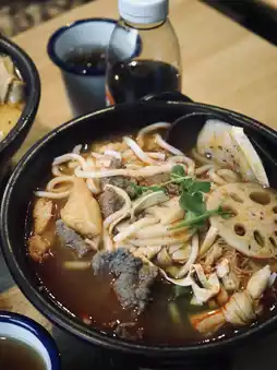 My friends and I ordered the tomato hot pot. The broth is rich and flavorful. We added duck blood, tofu skin rolls, enoki mushrooms, fish balls, and more. Each bite of the ingredients paired with a sip of the hot broth is absolutely satisfying.