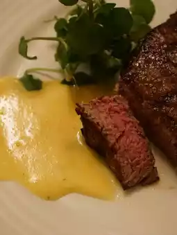 The menu focuses mainly on steaks, all reportedly cooked over luxurious charcoal grills. The Beef Wellington is especially renowned.