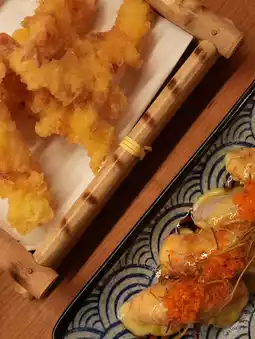 The shrimp tempura had a very crispy coating, and the shrimp were tender — the portion size was generous, just right for two people to share!