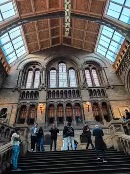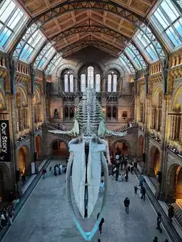 Among the many marvels housed within the Natural History Museum, one space stands apart—a cathedral of wonder where the colossal skeleton of a whale floats mid-air, suspended like a ghost of the deep. The moment I entered this hall, I felt a hush fall over me. It wasn’t just the scale—it was the atmosphere. The room itself, with its vaulted ceilings and golden stonework, felt ancient and reverent, like a sanctuary built to honor nature’s grandeur.