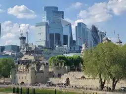 After crossing the bridge, you can easily visit the Tower of London, a medieval fortress that served as a royal palace and prison, and is now home to the Crown Jewels. On the opposite side, you'll see the modern skyscrapers of the City of London, highlighting the city's unique blend of history and modernity.