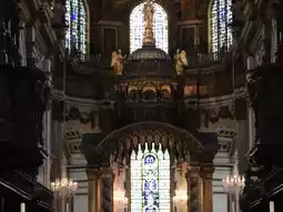 St. Paul's Cathedral in London, UK, is one of the city's iconic landmarks, renowned for its massive dome and classical architectural beauty. Upon entering, the majestic space, intricate stained glass, and delicate decorations immediately captivate, offering a serene atmosphere for appreciation.