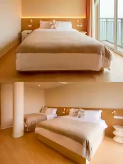 The room is equipped with a small refrigerator, and you can see the sunset at sunset