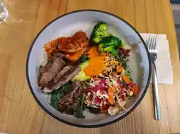 The restaurant is located inside the mall, with a comfortable, side-seat location overlooking the mall's beautiful atrium. The decor is also very cozy. This light, healthy, low-salt and low-sugar restaurant is a favorite among fitness enthusiasts and women. We purchased an all-day set meal through a group buy, which included drinks and a main course. The food was fresh and generous, and the drinks mainly featured fruit drinks and coffee. There was also a wide selection of breads and cakes, all beautifully presented. I'll try it again next time I have the chance.
