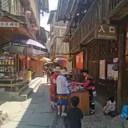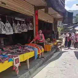 While visiting to Huangluo yao village you can see this small market 🧣. Here you can see the villagers dressed up in traditional outfit 🧥. It's not as big and with different varieties like other markets but we can enjoy there traditional items and there handcrafted pieces 👑👘. There is no entrance fee to the market or the village. 💴