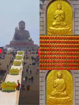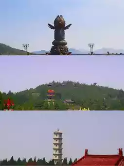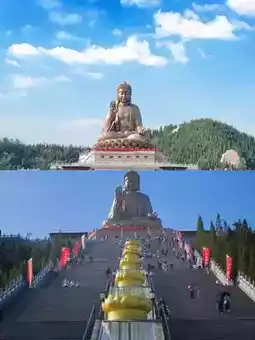 The Nanshan Giant Buddha is located in the Nanshan Tourist Area of Longkou City, Yantai City, Shandong Province. Standing at 38.66 meters tall and weighing 380 tons, it is made of tin bronze. The statue is assembled from 232 pieces of the Buddha's body, 108 lotus petals, 302 hair buns, totaling 642 pieces of tin bronze, making it a rare tin bronze statue of Sakyamuni sitting Buddha in the world, and it is known as the world's largest bronze sitting Buddha.