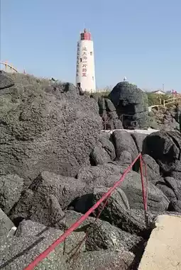there are many residential houses on the island, and the attractions include a lighthouse and volcanic rocks,