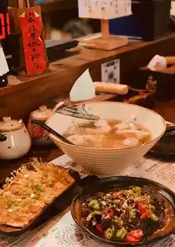 Different from the common braised pork, the skinless pork belly is marinated and then fried, with alternating layers of fat and lean meat, and an enticing color. What's most special is that this braised pork is soaked in broth, which keeps it moist and tender.