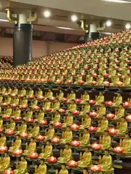 Under the lotus base of the Buddha statue is the Appreciation Hall, the Buddhism History Museum and the Ten Thousand Buddhas Hall. There are 9,999 small Buddha statues in the hall but together with the Nanshan Giant Buddha, they make up a total of 10,000 Buddhas.