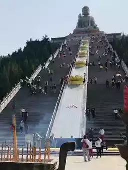 Longkou Nanshan Giant Buddha - Located at the Longkou Nanshan Scenic Area, Yantai, Shandong province, China. It the largest, seated bronze Buddha statue in the world - 38.55 metre-tall (126 feet) and weighs 380 tonnes. You will have to climb 360 steps that lead to the base of Longkou Nanshan Giant Buddha.