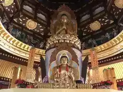 In front of the five halls is the Medicine Buddha Musical Fountain. In the middle of the fountain is the statue of Medicine Buddha and when the musical fountain is not in operations, the Medicine Buddha is hidden in the closed lotus petals. When musical fountain starts, the lotus petals are opening, and the Medicine Buddha is rising slowly upwards in rotation.