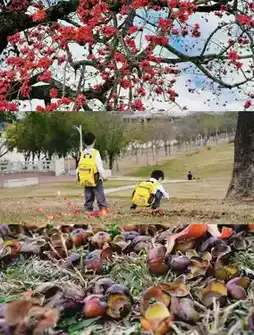 There is a 200-year-old kapok tree in Xiaojin Village. Its flowers dye the sky red and fall all over the ground.