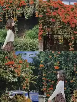 The orange-red petals bloom all over the wall, setting off the warmth and flamboyance of spring, symbolizing the passing of winter and the arrival of spring, ushering in new strength for the four seasons.