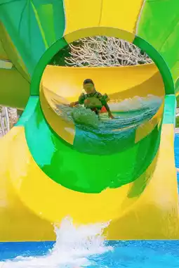 Rainbow slides + giant funnel rides for thrill-seekers! The family-friendly lazy river is perfect for kids (don’t forget swim caps).