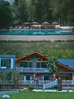 The 120㎡ infinity pool is filled with natural mountain spring water, crystal clear and skin-friendly. After swimming, your skin feels silky smooth! 💧