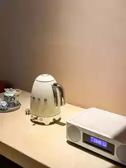 🎈The guest room facilities are excellent, with a private outdoor balcony and retro-modern woven furniture, it feels like traveling back in time👒. Tatami mats, LCD TV, Le Labo bath products, comfortable bathtub, YAMAHA sound system, and even a Husky retro mini-fridge, Smeg kettle, and more are all available🎁.