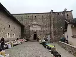 Yan Yi Wei is also in Yangcun Town, less than 10 li west of Wushi Wei. It's an independent rectangular courtyard building, four stories high, built of blue brick and stone, tall and square. Yan Yi Wei is notable for its strong defensive features, with watchtowers at each of the four corners, a patrol path on the fourth floor, and strategically placed firing slits for all-around defense. The design of the main gate is particularly ingenious. The gate passage is wide and thick, with three layers of doors. The outermost door is covered with iron sheets for impact and fire resistance. Above the gate passage, there are two parallel, round holes in the wall, slightly thicker at the inner end and thinner at the outer end, about 10 cm in diameter. These holes are slightly curved, like slides, allowing boiling water or other substances to be poured down from the second floor to attack bandits trying to break down the door. During World War II, a bomb from a Japanese aircraft hit Yan Yi Wei, damaging only a small section of the fourth-floor wall. There were no casualties, demonstrating its robustness. Even the construction of Guanxi Xinwei was based on the design of Yan Yi Wei. Interestingly, both Wushi Wei and Yan Yi Wei were built by the Lai clan, who migrated from Shicheng in the early Ming Dynasty and settled in Yangcun, later surpassing the original Yang clan in prosperity. The Xu clan of Guanxi Xinwei intermarried with the Lai clan of Yan Yi Wei for generations, spanning hundreds of years. The prosperity of these three families stemmed from the timber business. While there's no other information available about them, their story offers a glimpse into the history of the Hakka people in southern Jiangxi. Yan Yi Wei is also free to visit. Tourism development is underway in the village, with nearby streets and shops featuring local characteristics, attracting many tourists.