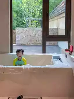 Psst: Soaking in the courtyard bathtub at sunset 🌄