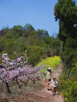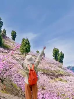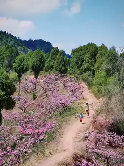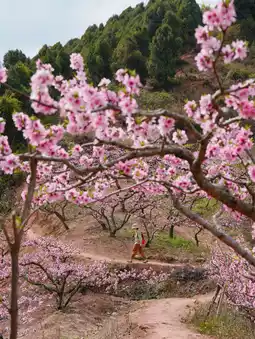Total distance is 3.5 kilometers, mostly through country roads with some dirt paths, and you can take beautiful photos of the peach groves along the way. Suitable for the elderly and children for a light hike to enjoy the flowers, and it's not crowded.