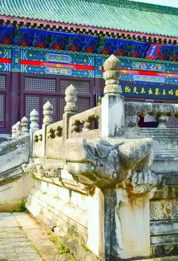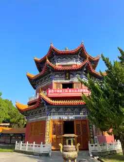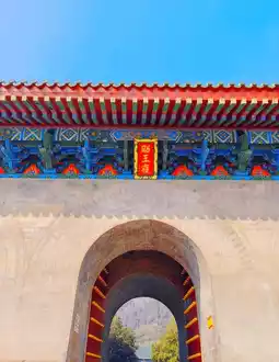 Longquan Mountain also has a famous temple in Chu sky, 'Lingquan Temple', one of the largest Taoist sites in Central China. The temple has red walls and golden roofs, grand halls and pavilions, solemn and majestic, with towering buildings, ancient trees reaching the sky, and shaded green grass, with carved beams and painted rafters, making it a spectacular sight.
